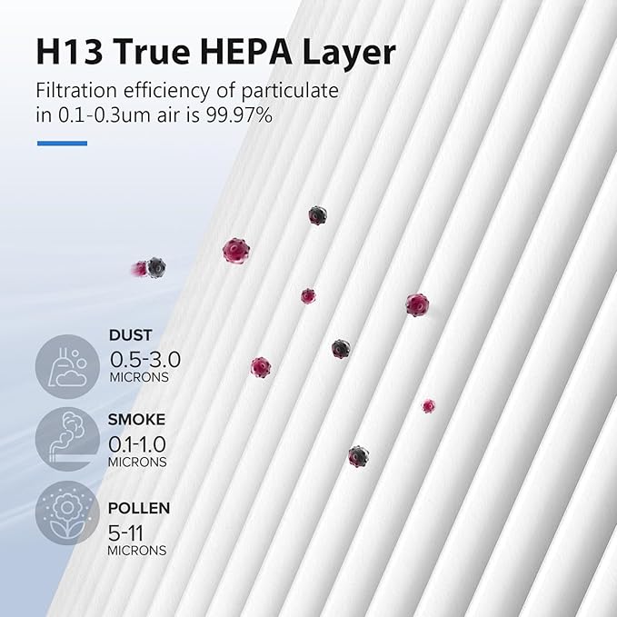 - 4-IN-1 ADVANCED FILTRATION: Mk01 air filter multi-stage defense system combines a nylon pre-filter for large particles, Reaction filter layer can react with harmful particles entering the filter and produce harmless substances, a efficiency filter, and high-density pelletized activated carbon to neutralize odors, VOCs, and formaldehyde—delivering clinic-grade air purity for your home.
