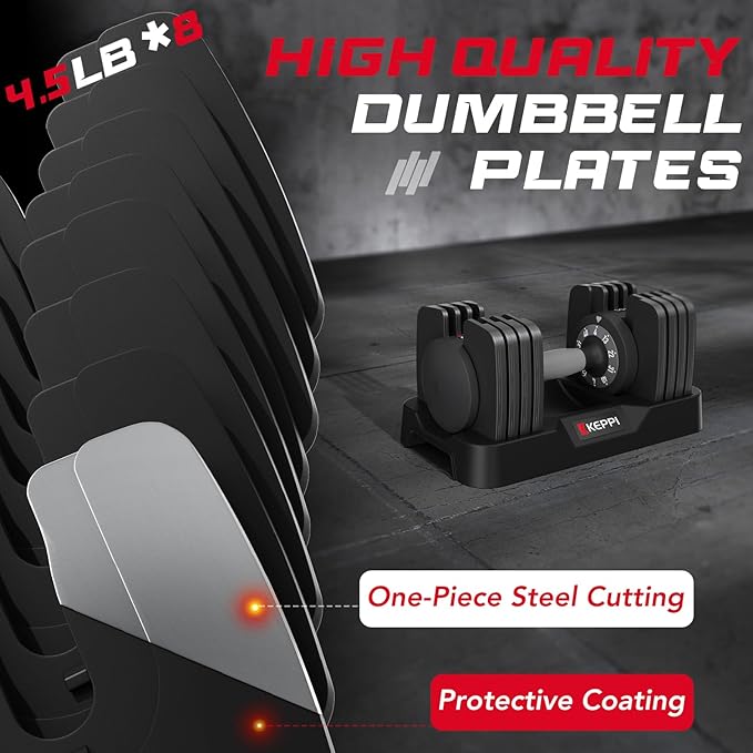 Keppi Adjustable Dumbbells Set-25lb/40lb/55lb/60lb, Anti-Slip Metal Fast Adjust Weight Handle, Exercise & Fitness for Full Body Workout - Adjustable Dumbbell Series
