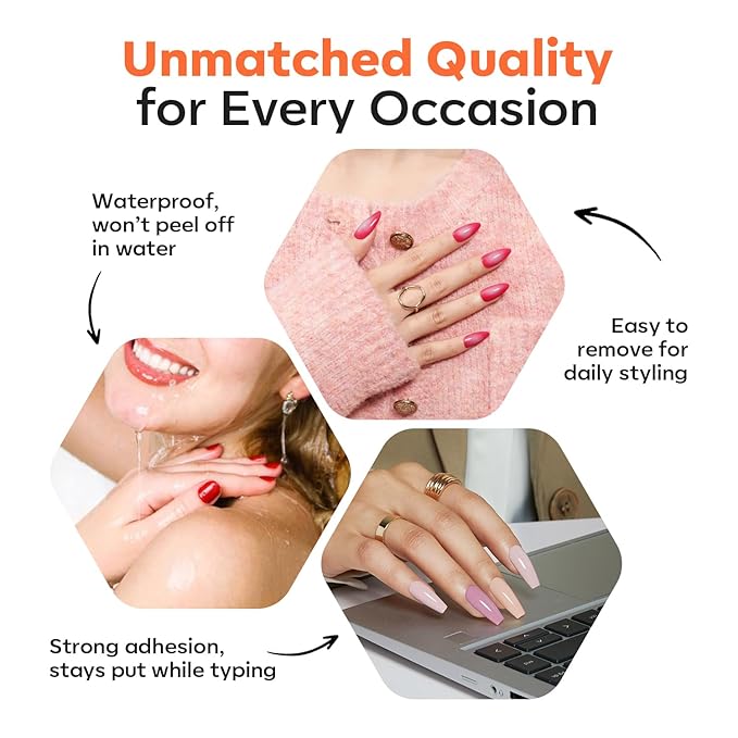 - Waterproof & Long-Lasting: After curing, these adhesive tabs are waterproof and hold up well during daily activities. With proper application, you can keep your manicure for more than 28 days