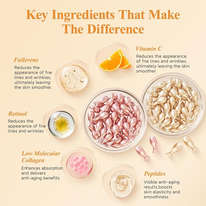 - 【Complete Day & Night Care--Day C Night A 】 Vitamin C serum capsules smooth, hydrate, and protect by day; Retinol serum capsules repair, firm, and smooth overnight for 24-hour anti-aging results