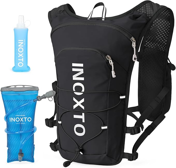 - ❤ 【Ultra-lightweight design】 High-quality nylon material and ultra-lightweight design make it more comfortable to drive. The INOXTO Sport Backpack weighs only 140 grams and can hold 1.6 liters in the main compartment. In addition, the left and right belts have pockets for storing 250 ml PET bottles. Next to the main pocket, there is a pocket for storing mobile phones and items, so you can jog while listening to music!