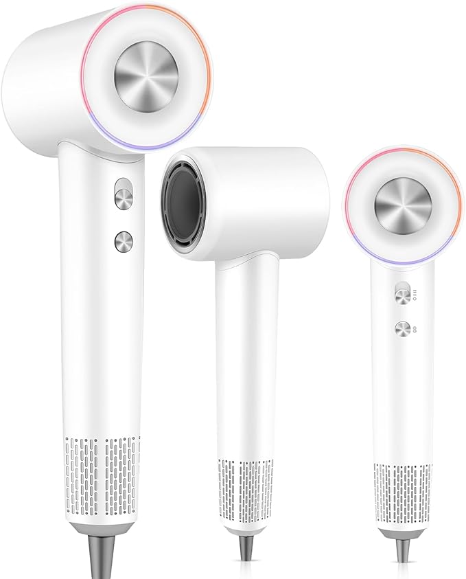 - 【Smart Temperature Control with LED】Precise Heat secador de pelo profesionalfor Ultimate Hair Protection, Equipped with an innovative LED ring, this hair blow dryer allows you to easily select your preferred heat setting: Red Light – Hot Air: Ideal for fast drying and styling, Orange Light – Warm Air: Perfect for gentle drying to protect delicate hair, Blue Light – Cool Air: Sets your style and reduces heat exposure.small hair dryer customize your drying experience with 4 temperature modes (cool/warm/hot/cold and Hot circulation), 2 speed settings. Built-in NTC intelligent temperature control sensor monitors and adjusts heat 120 times avoid overheating damage to hair and protect your hair