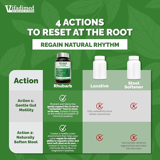 - ๐๐๐ง๐ญ๐ฅ๐ ๐๐ง๐ ๐๐๐ญ๐ฎ๐ซ๐๐ฅ ๐๐ฅ๐๐๐ง๐ฌ๐ Unlike some detox pills or artificial laxatives, Vifadimed RHUBARB is made from herbs โ so no worries about habit-forming or dependency, tension, or cramping. Itโs safe for adults, men and women, and even postpartum moms, without causing urgency, cramping, or long-term dependency.(*)