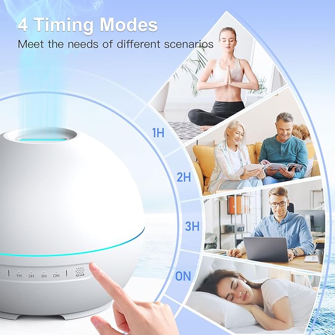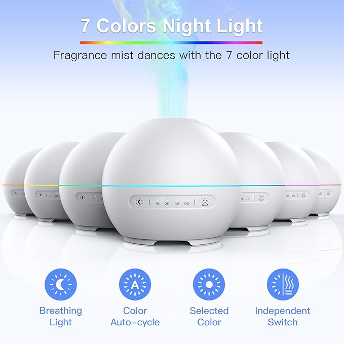 - 4 Timer Settings & 7-Color Light: Easily select from 1/2/3-hour timers or continuous operation with a simple touch control. The aromatherapy diffuser's light adds a cozy ambiance, great for creating a welcoming atmosphere during gatherings or intimate dinners in your living room. Night light can be turned off for mist-only operation