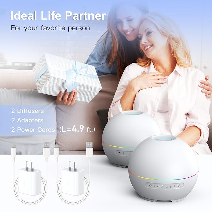 - 2 Pack Diffusers for Home: Each package includes 2 scent diffusers, 2 AC adapters, and 2 USB cables, making it a thoughtful gift for friends and family who appreciate the benefits of aromatherapy. Great for those looking to enhance their living spaces together