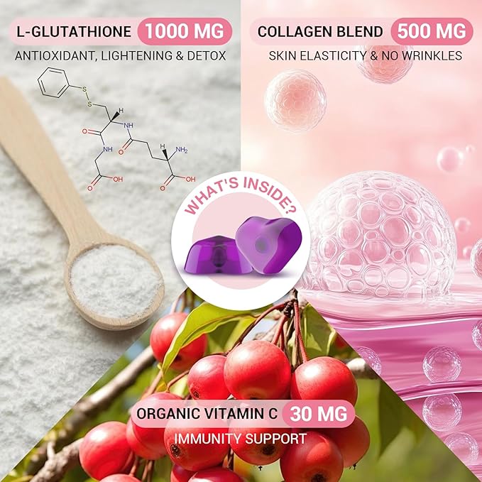 - High-Potency L Glutathione: Our gummies deliver 1000mg of Liposomal L-Glutathione per serving, encapsulated for maximum absorption to invigorate mitochondrial function. Experience superior antioxidant & detox, and a healthier-looking complexion with each delicious glutathione gummy