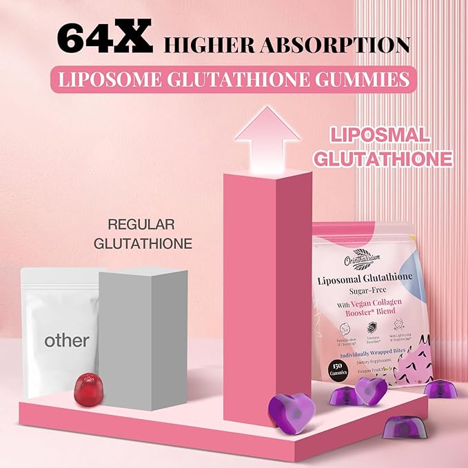 - High Absorption Liposomal Glutathione Supplement: The use of liposomal technology in glutathione gummies enhances the bioavailability of glutathione, allowing for 64 times greater absorption compared to non-liposomal forms - ensuring more efficient glutathione delivery and absorption