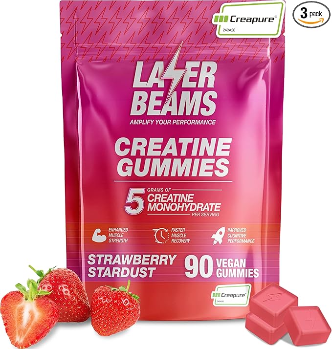- Delicious Strawberry Stardust Flavor for Daily Use: Forget chalky powders and messy shakes. Our strawberry stardust creatine gummies are a tasty and enjoyable way to boost your fitness routine. With only a few gummies a day, you can maintain your body’s creatine levels effortlessly while satisfying your taste buds.