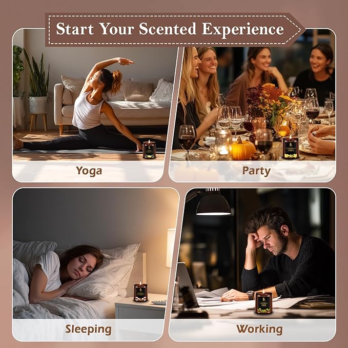 - Natural Soy Wax: Each scented candle is made of 100% natural soy wax, which burns without black smoke and harmful substances, protecting the health of you and your family. Suitable for use in a variety of scenes such as bedrooms, living rooms, bathrooms, etc., and enjoy the pure fragrance with peace of mind.
