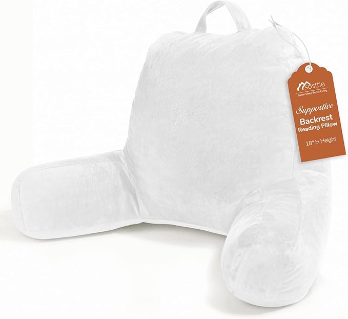Sasttie Reading Pillow, Velvet Back Pillow for Bed Sitting Up, Adult Back-Rest Support Cushion with Arms for Sit Up on Couch, Sofa, and Floor, Dorm Essentials, Reading Accessories, White