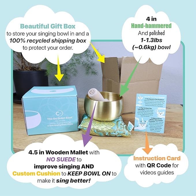 Tibetan Singing Bowl Set – 4-Inch BeMindful Sound Bowl for Meditation, Calm & Stress Relief | Designed for Tapping & Singing – Pure Resonance for Sound Healing, Yoga & Mindfulness – by CircleUp