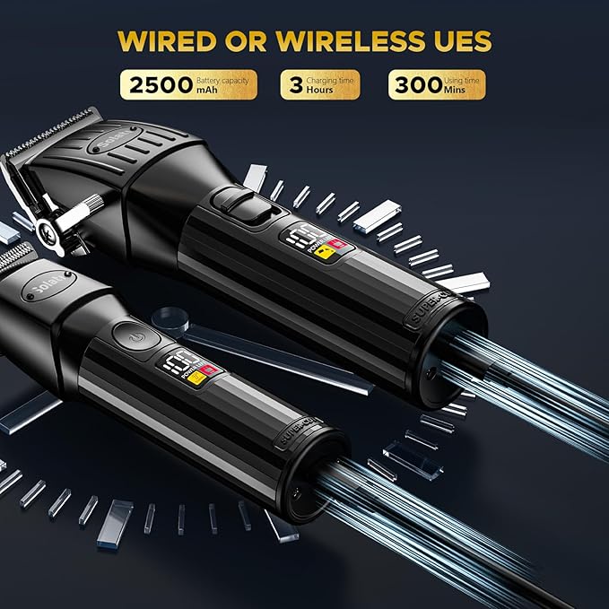Professional Hair Clippers for Men Cordless Trimmers Kit with LED Display Electric Beard Trimmer for Kid Cordless Beards Trimmer Haircut Grooming Kit Gift for Men Women Barber Kids (Black)