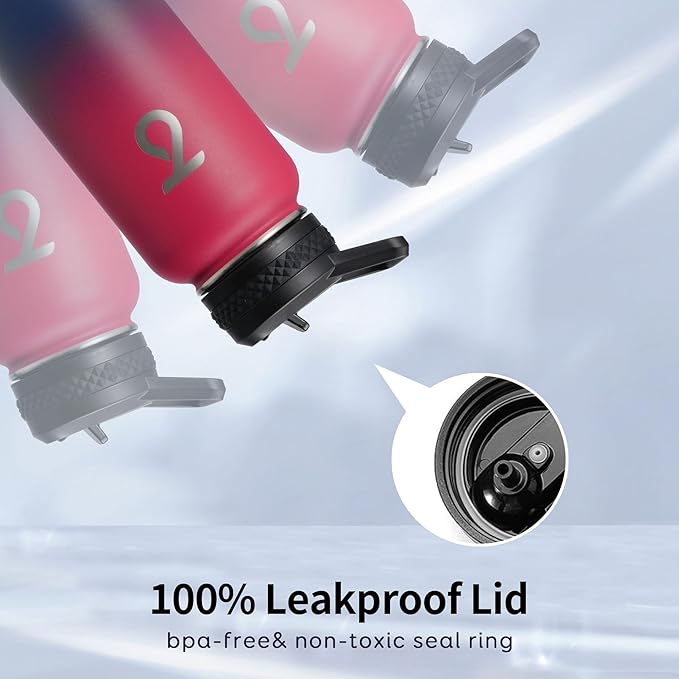 - Leakproof Triple Lids: Each lid comes with a rubber seal ring to ensure 100% leakproof. Sip through the flip-up straw lid, drink like a fish through the spout lid, or refill ice cubes through the wide mouth, you are in good hands with Trebo 40 oz water bottle.