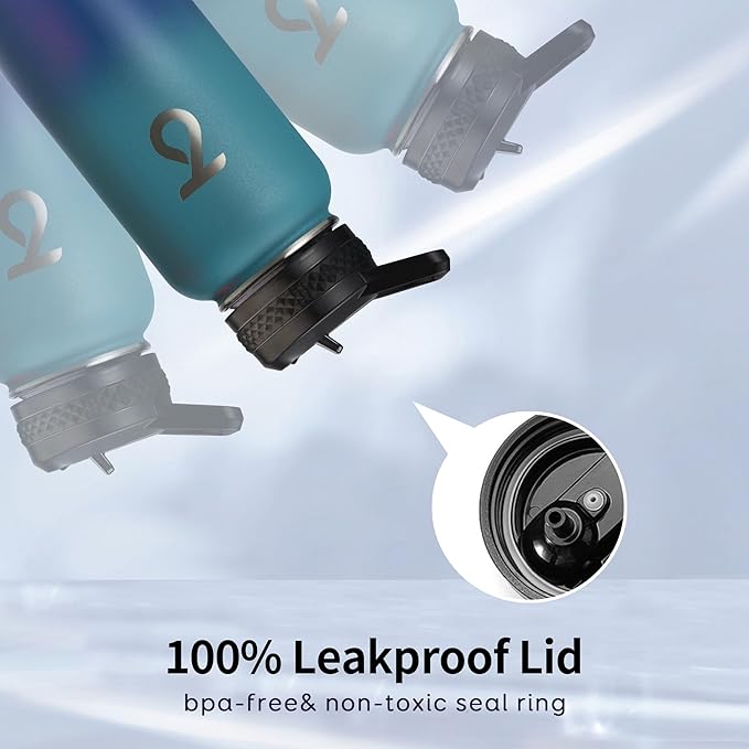 - Leakproof Triple Lids: Each lid comes with a rubber seal ring to ensure 100% leakproof. Sip through the flip-up straw lid, drink like a fish through the spout lid, or refill ice cubes through the wide mouth, you are in good hands with Trebo 32 oz water bottle.