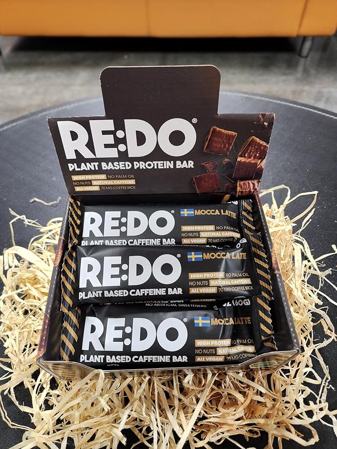 RE:DO Plant based Protein Bars I Swedish Mocca Latte 2.1oz bars I 13g Vegan Protein, Nutrition Protein Bars I High Protein Recovery Bars, No Palm oil I (9 count) (Large, Mocca latte)