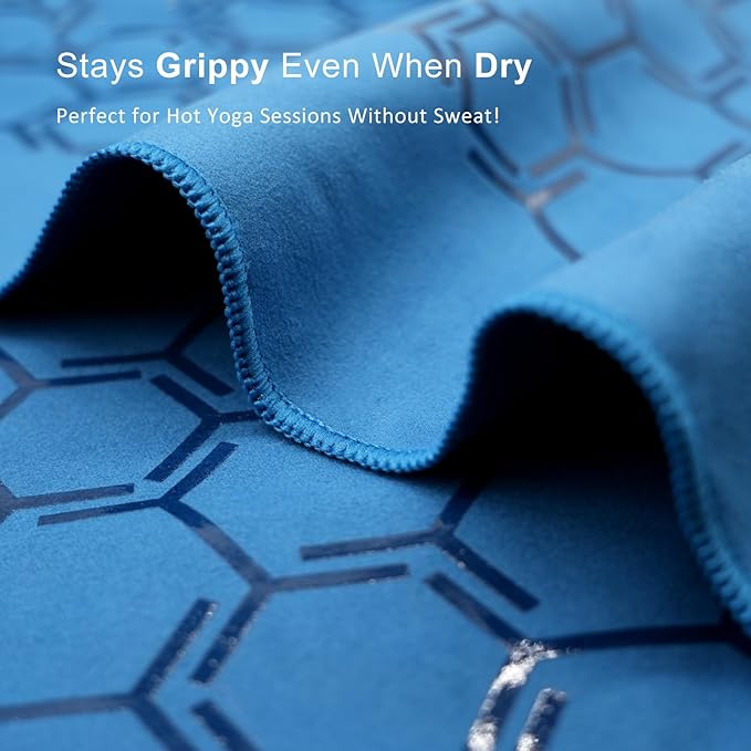- NON-SLIP & SKID-LESS: The yoga towel, with its honeycomb design, ensures a slip-free practice. Made of soft microfiber, it features a double-sided embedded silicone pattern that grips the mat or floor, providing a smooth, non-slip surface without bumps. This textured surface maintains traction even when wet, allowing you to focus on your practice.