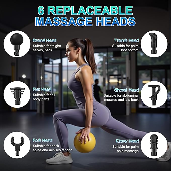 - [Powerful Power] This deep tissue massage gun adopts high- quality housing and high-torque brushless motor. Whetheryou are an athlete, aerobics enthusiast, strength training enthusiast, or a strength training fanatic, achieve faster muscle relax and reduce downtime
