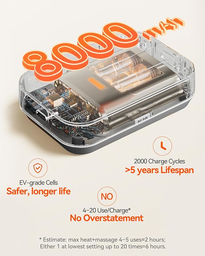 - CORDLESS HEATING PAD— Unlike typical heating pad with hassle wires or only 5000 mAh bulky power-bank packs, IKEEPFIT MAXwarm 3.0 uses a built-in 8000 mAh Japansese battery for true wireless freedom and longer use. it delivers up to 10 uses per charge, over 2000 rechargeable lifespan, and safe operation with auto shut-off and heat sensors for shiatsu massage-like heating relief, making it a safe full body heating pad for back, waist, legs, or shoulders. Fits most people 30"–65" waists (41" base + 12"/28" extension straps).