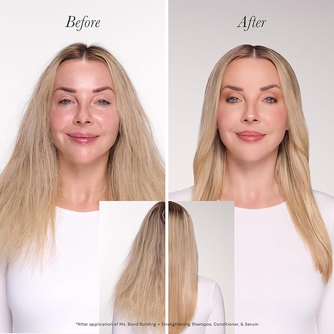 - REPAIR DAMAGED HAIR BONDS: Ms. Bond Building or Strengthening Conditioner uses advanced technology to rebuild hydrogen and disulfide bonds, targeting damage caused by heat, coloring, or chemical, keratin hair treatment. Leave in conditioner for dry damaged hair, Restore strength, elasticity, and shine to your hair.