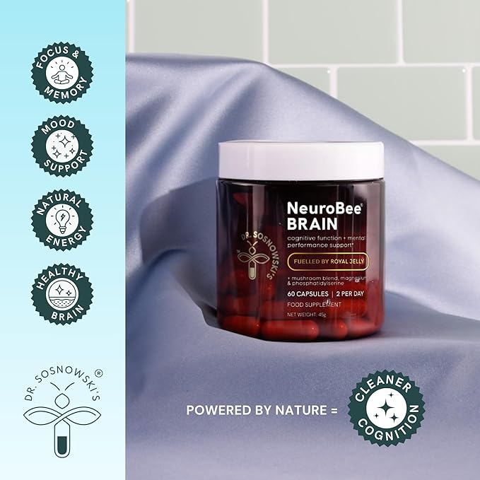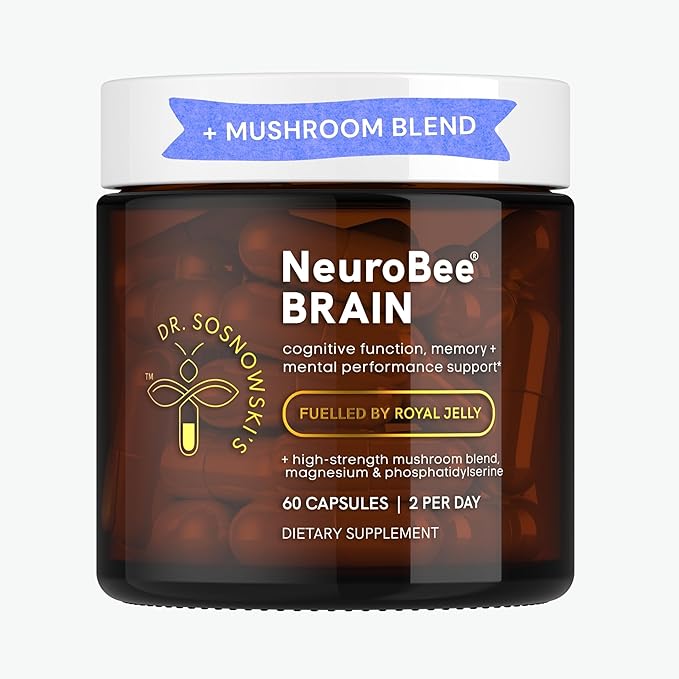 - COMPREHENSIVE NEURO SUPPORT: Combining science-backed vitamins and minerals, an organic mushroom blend and potent hive-derived royal jelly, NeuroBee Brain takes a unique approach to daily brain health support, carefully designed to promote cognitive and psychological function, support energy levels and reduce tiredness and fatigue.