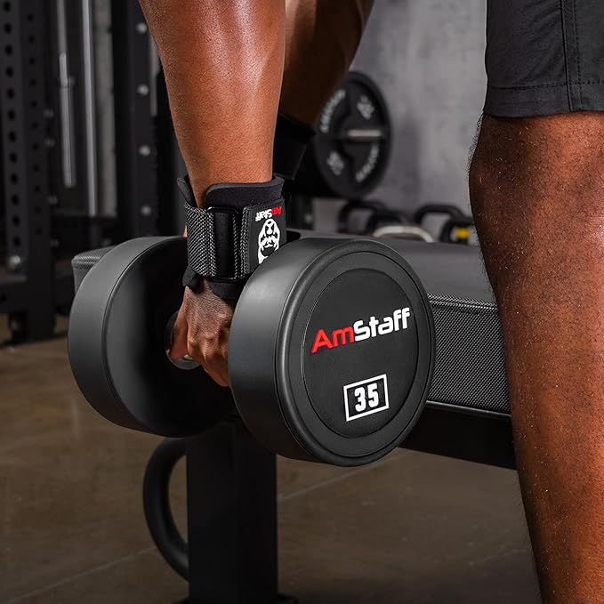 AmStaff Fitness Weight Lifting Hooks (Pair) - Gym Wrist Straps with Steel Hooks for Weightlifting, Pull-Ups, Deadlifts, Strength Training, and Fitness Workouts - Adjustable Neoprene Wrist Support
