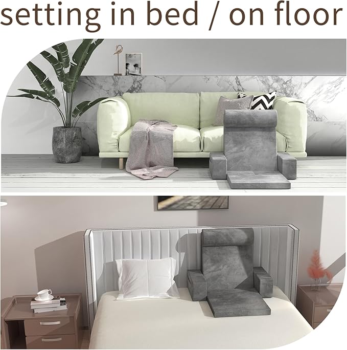 - 【Sitting Up Pillow with Seat Cushion】Yes,this sitting pillow for bed combined with a cushion.When you want to sit on the floor to read,play games,or watch TV,don't look for extra cushions to relieve the discomfort of sitting on the floor.You just need to open the folded sponge block at the bottom,so that you can both rest your back and have a comfortable cushion.