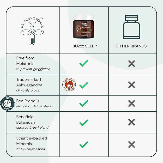 Dr Sosnowski's BUZzz Sleep Aid Supplement | Magnesium, Propolis, Ashwagandha, Valerian, Chamomile | Relax, Sleep Deeper, Wake Refreshed | 60 Capsules