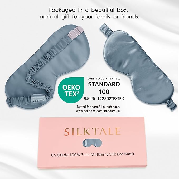 - SILKTALE sleep eye mask is made of 100% Grade 6A 19 momme Pure Mulberry Silk. Our silk is granted the OEKO-TEX STANDARD 100 certification, which is certified to be free of chemicals and colored with environmentally-safe dyes.