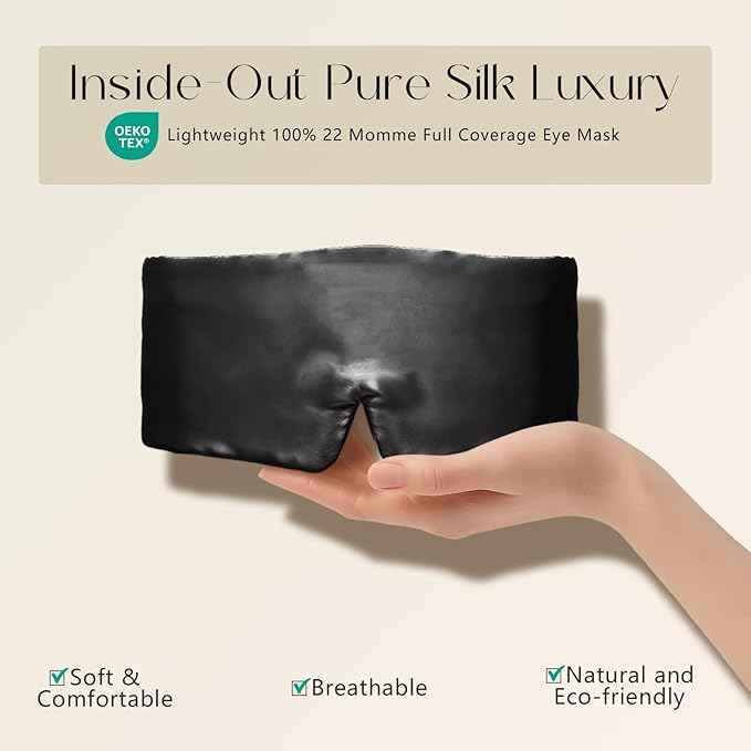 - ✅100% 22 Momme Grade 6A Luxury Construction: Crafted entirely from the highest-grade mulberry silk - including a silk-filled interior - this premium sleep mask delivers superior thickness, gloss, and durability. The full silk encasement ensures unmatched breathability, cloud-like comfort.
