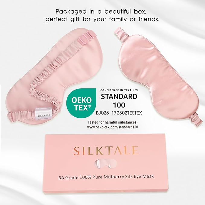 - SILKTALE sleep eye mask is made of 100% Grade 6A 19 momme Pure Mulberry Silk. Our silk is granted the OEKO-TEX STANDARD 100 certification, which is certified to be free of chemicals and colored with environmentally-safe dyes.