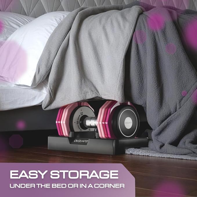 OVELY4YFIT Adjustable Dumbbell, 5-in-1 Weight Options (4.5-22.5LB), Quick 1-Second Weight Adjustment, Anti-Slip Metal Handle, Compact Design with Pink Gradient Plates, Perfect for Women & Home Gym Workouts