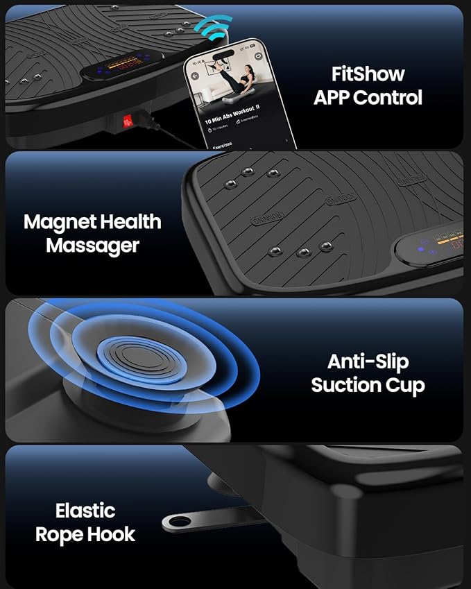 - Smart App-Controlled Fitness: Seamlessly manage your vibration plate exercise machine with the app for personalized settings and progress tracking. Ideal for tech-savvy users, this vibration Plate platform removes the guesswork from workouts, offering easy control and data to optimize your fitness journey at home.