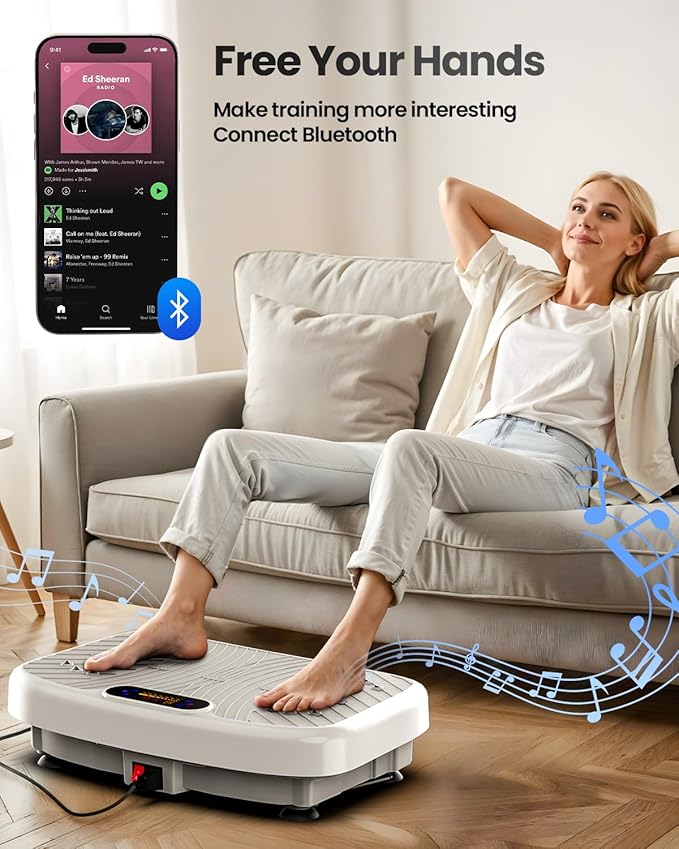 - Space-Saving for Easy Storage: This vibration plates for weight loss doubles as a Bluetooth speaker via BT connectivity. Its compact size ensures easy storage and use anywhere, while the anti-slip surface and ergonomic shell provide stability. Includes remote control, resistance bands, and manual for complete home workouts.