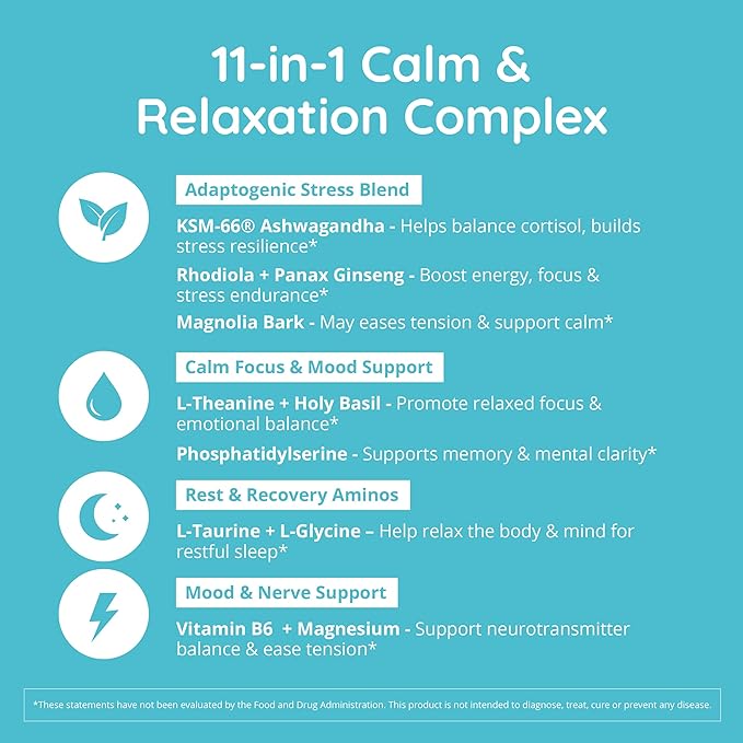 - [Promotes Relaxed Focus] L-Theanine, paired with Phosphatidylserine, helps support calm alertness without drowsiness. Whether you're working, parenting, or juggling multiple priorities, Zen Again helps you stay composed and present during everyday stress.*