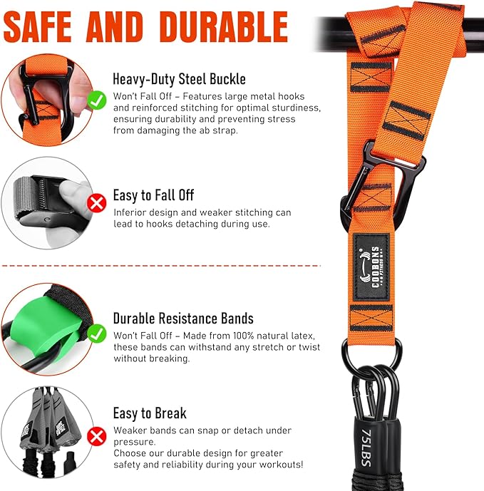 - Premium Safety and Long-Lasting Durability: Each pull up resistance band is encased in a protective nylon sleeve, enhancing durability and minimizing wear. Featuring a strong metal ring and reinforced stitching, these pull up assist bands are built to handle intense workouts while ensuring user safety. With premium materials and excellent craftsmanship, this set provides long-lasting comfort and reliability for your fitness journey.