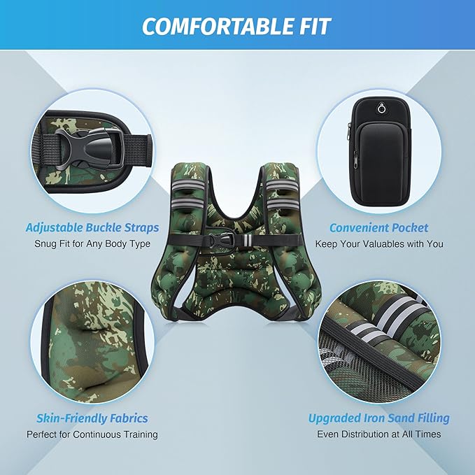 - ADJUSTABLE FEATURES: Adjustable elastic straps and reflective stripes help this vest go any place at any time. For circuit training, weightlifting, cardio, strength training, weight loss, and beyond, this vest will take your workout to the next level