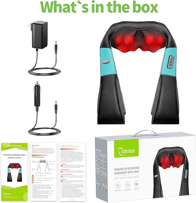 - 【Deep Massage, Soothe Body and Mind】 The Cotsoco Neck and Shoulder Massager is designed to move freely, making it suitable for most parts of the body, from the shoulders to the feet, providing a full-body massage. With 3 adjustable massage speeds and 16 powerful 3D massage nodes that automatically change direction every minute, this massager offers a relaxing experience after long hours of work or physical activity.