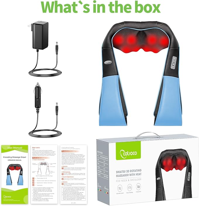 - 【Deep Massage, Soothe Body and Mind】 The Cotsoco Neck and Shoulder Massager is designed to move freely, making it suitable for most parts of the body, from the shoulders to the feet, providing a full-body massage. With 3 adjustable massage speeds and 16 powerful 3D massage nodes that automatically change direction every minute, this massager offers a relaxing experience after long hours of work or physical activity.