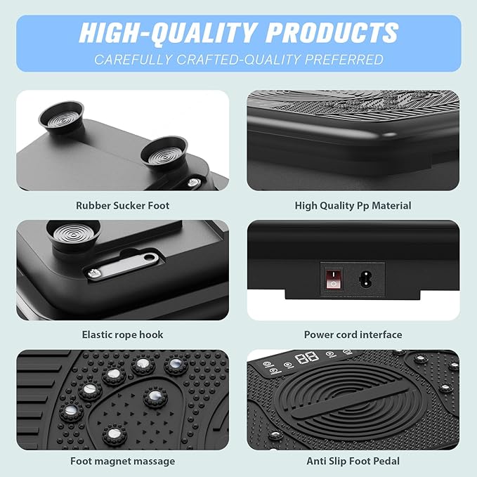 - FULL BODY FITNESS WORKOUT Transform your daily routine with whole-body vibration training that helps activate muscles, improve circulation, and support lymphatic health — all in just 10 minutes a day