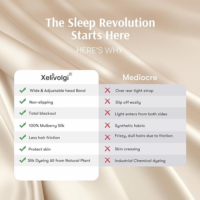 - [ Luxurious 100% Silk Material ] Our Side Sleep Silk Sleep Mask is crafted from premium 22 momme mulberry silk, ensuring a soft, smooth touch against your skin. This luxurious sleeping silk mask not only enhances your comfort but also offers anti-aging properties by reducing friction and retaining moisture.
