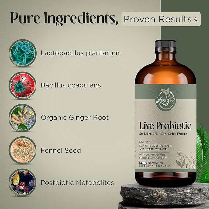 - ๐งฌ Advanced Probiotic Blend Features 50 billion CFU from Lactobacillus plantarum, Bacillus coagulans, Lactobacillus rhamnosus, and Bifidobacterium lactis, plus organic ginger root and fennel seed.