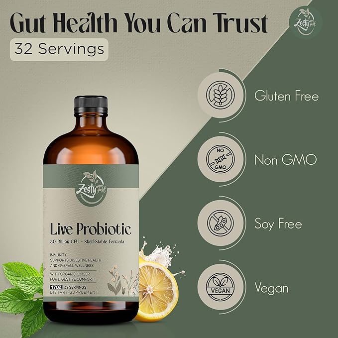 Liquid Probiotic - Natural Probiotic Blend with 50 Billion CFU - Helps Promote Immune Support & Gut Health for Men & Women - No Additives & Fillers -Vegan - Formulated in The USA, 17 fl oz