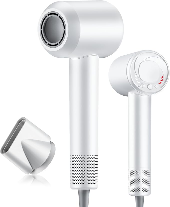 - 【Compact and Quiet: Ideal for Travel】Weighing just 0.95lb (431g),Hair dryer 381g, smooth air nozzle 50g, this lightweight hair dryer is perfect for both home use and travel. Its compact design, comfortable grip, and user-friendly buttons (Switch/Wind Speed/Temperature Settings) make it easy to handle. Additionally, advanced noise reduction and soundproofing technology ensure a peaceful and comfortable drying experience.
