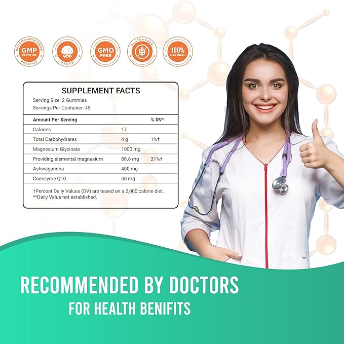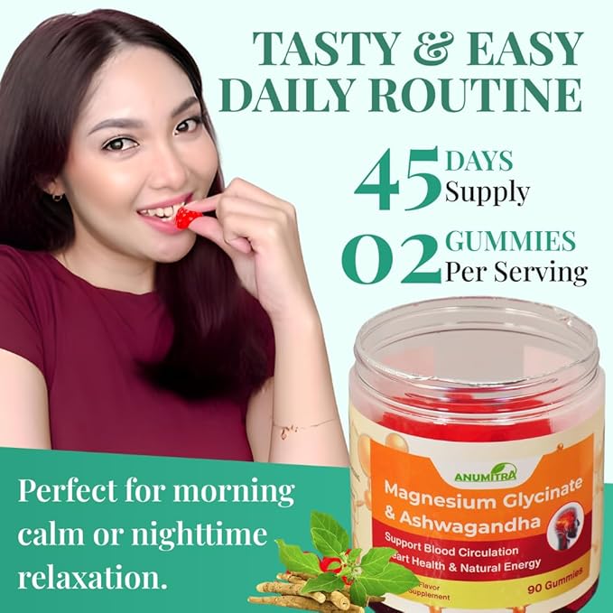 - 【QUALITY MAGNESIUM GLYCINATE PLUS ASHWAGANDHA GUMMIES - GMP CERTIFIED】Manufactured in a GMP-certified facility, Magnesium Glycinate plus Ashwagandha suplement gummies adhere to the highest quality standards. Each bottle contains 90 gummies (45 servings), designed to support daily relaxation and balance.