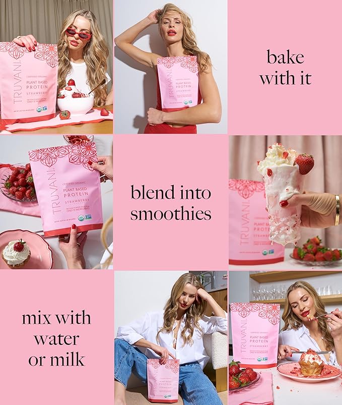 Truvani Vegan Pea Protein Powder | Strawberry | 20g Organic Plant Based Protein | 10 Servings | Keto | Gluten & Dairy Free | Low Carb | No Added Sugar