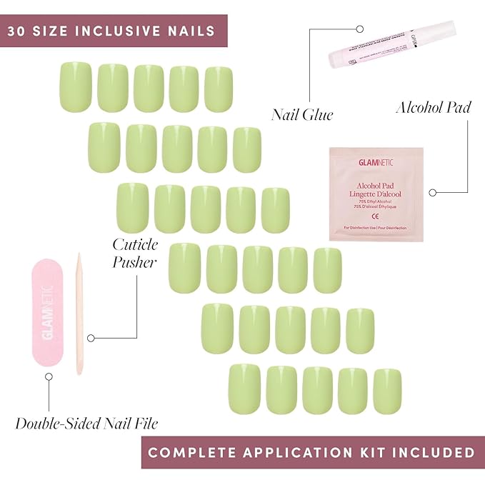 - High-Quality Press-On Nail Kit: All Glamnetic Press-On Nail Sets offer high-quality salon style and feature protective UV coating, to ensure your nails will never break or split!