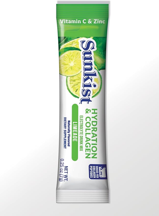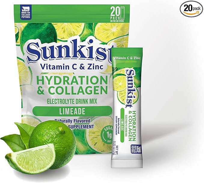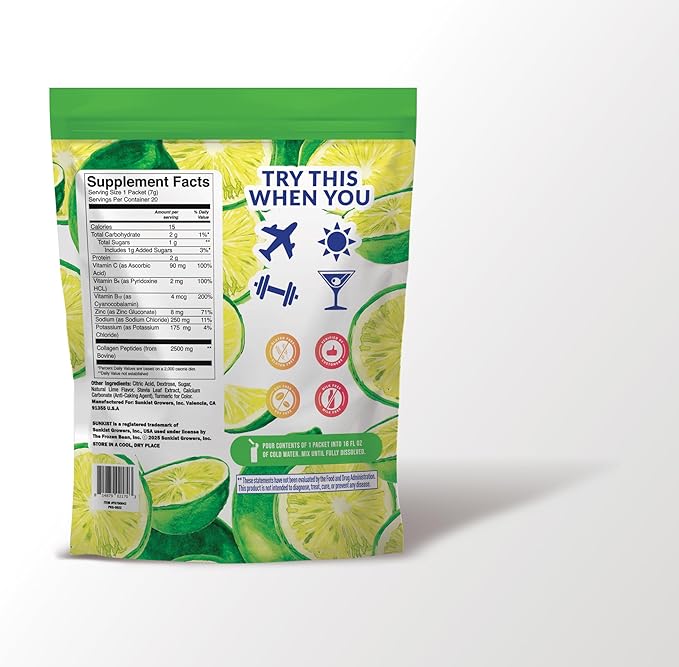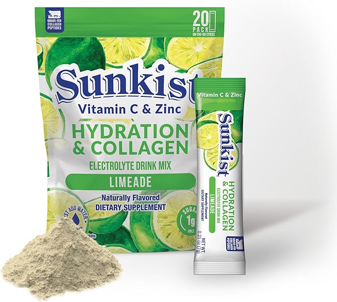 The Frozen Bean Sunkist Collagen Drink Mix - Hydration Limeade Electrolyte Drink for Women with Vitamin C, Zinc, Collagen Peptides, Naturally Flavored - 20 Packs