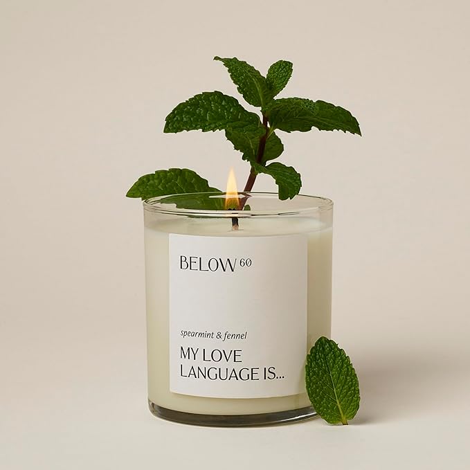 Below 60 Scented Candle – My Love Language is… – Essential Oil-Based Fragrance – Hand-Made with Paraffin-Free Soy Wax – 100% Cotton Wick – 50 hr Burn Time - by Hilary Duff – Spearmint & Fennel (10oz)