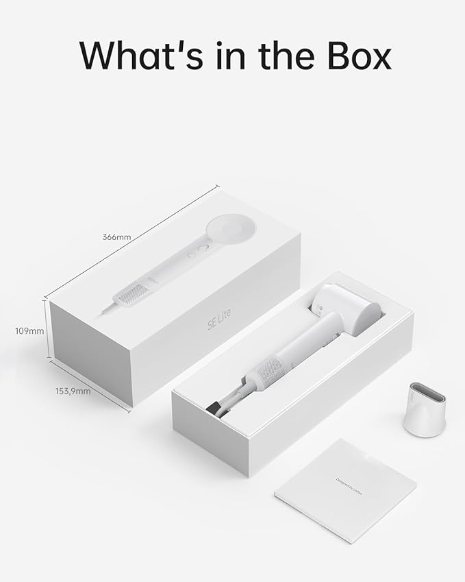 - Travel-Friendly Choice: For when you need hair care on the go. The SE Lite weighs in at just 345g with a 6mm shorter air outlet than the SE, making it the perfect travel hair dryer