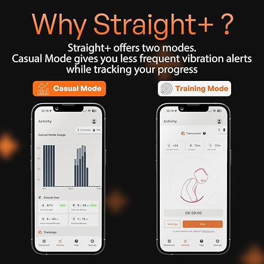 - Real-Time Tracking with Mobile App Integration: Straight Plus connects to a user-friendly mobile app that tracks your posture in real time. Monitor your progress, set goals, and receive personalized feedback to stay motivated. The app’s intuitive interface ensures you stay on track effortlessly.